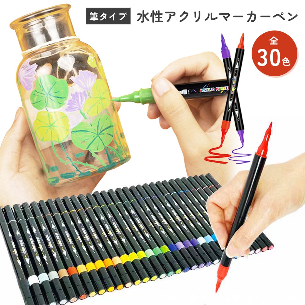 【50%OFFクーポン有り♪20時から】【アクリル水性インク】マーカーペン 30色セット 筆タイプ アクリルペイント イラストペン イラストマーカー アートマーカー 画材 塗り絵 色塗り 初心者からプロまで