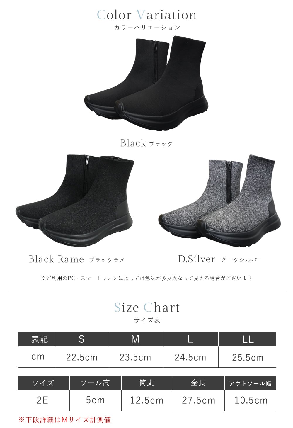 ◆サイズ:S【22.5cm】/ M【23.5cm】/ L【24.5cm】/ LL【25.5cm】